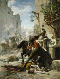 | Keywords: Malasana y su hija - Eugenio Álvarez Dumont.jpg cm 365 207 oil on canvas https //www museodelprado es/coleccion/galeria-on-line/galeria-on-line/obra/malasana-y-su-hija-se-baten-contra-los-franceses-en-una-de-las-calles-que-bajan-del-parque-a-la/ Galería online Museo del Prado PD-old-70 Uploaded with UploadWizard Dos de Mayo Uprising 19th-century cuirassiers Peninsular War Spanish War of Independence Eugenio Álvarez Dumont people of Madrid in art | ||||