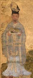 | Keywords: Male figure as Mercury, T'ang dynasty.jpg en Male figure a minister as the planet Mercury from the painting Tejaprabhā Buddha and the Five Planets 熾盛光佛並五星 He carries a plate of flowers and fruits while wearing a pig ornament atop his head 897 A D British Museum Chang Huai-hsing 張淮興 other versions PD-old-100 Buddhist paintings from China Buddhist paintings of the Tang Dynasty Paintings in the British Museum | ||||