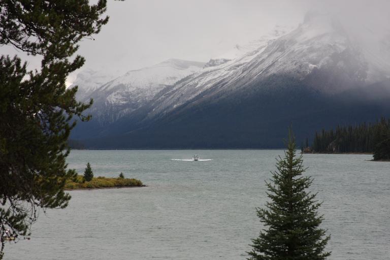 Keywords: canada lake jasper maligne lake rocky mountain boat house house maligne snow capped mountains alberta canadian rockies mountain boat snow