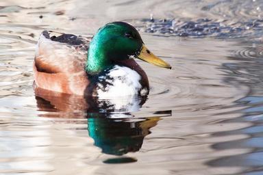 Keywords: mallard anas platyrhynchos drake bill yellow duck bird animal water swim lake mirroring
