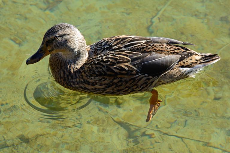 Keywords: mallard duck female water bird plumage ducks feather lake swim waters swimming duck poultry