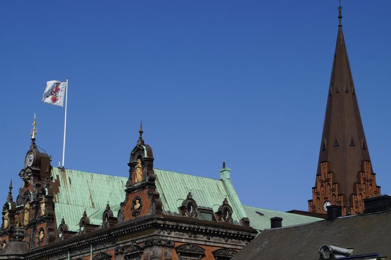 Keywords: malmö sweden home facade old historically building architecture cityscape city view roofs steeple tower gable sky