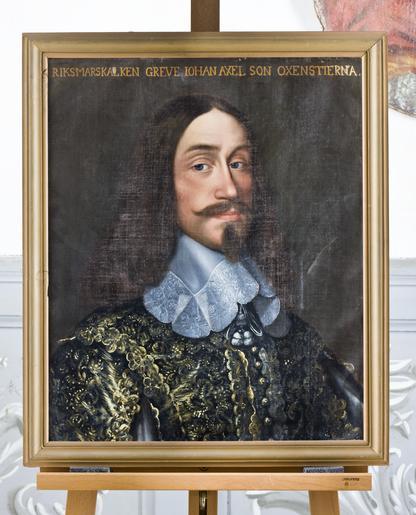 Keywords: Målning. Porträtt. Johan Oxenstierna - Skoklosters slott - 87012.tif Johan Oxenstierna greve plain text Långt brunt hår pipskägg Svart dräkt med guldstickningar Nervikt vit krage med spetskant Mörk bakgrund <br/>Inskrift RIKSMARSKALKEN GREVE JOHAN AXELSON OXENSTIERNA Bakpå duken skrivet med svart färg F E L <br/>På spännramen med rödkrita Riksmarskalken Grefve Johan Axelson Oxenstierna på övre ramlisten skrivet up med blyerts <br/>Kilad spännram Gulmålad profilerad ram bredd 38 mm original caption Målning Porträtt Johan Oxenstierna SKO 11320<br/> Nyckelord Oxenstierna Krage Guld 1600-tal Greve Herrmode Frisyr Man Hulle Målning Porträtt Spets Pipskägg Mustasch oil on canvas size mm 470 580 SKO F E L place of origin original filename sm_dig4648_11320 31269 inventory number SKO 11320 87012 PD Jens Mohr Jens Mohr Gold Fashion Male clothing Hair fashion Men in art Portrait paintings Portrait paintings of men with moustaches Media contributed by LSH unmatched creator Media contributed by LSH unmatched keyword Oxenstierna family Media contributed by LSH 2013-10 |