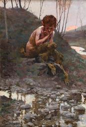 Keywords: Mały faun.jpg Artwork title Mały faun Little Faun Kleiner Faun before 1923 1 http //www agra-auctions com/object php idd 661 Agra auctions 04 December 1997<br/>2 http //www polswissart pl/obraz id 1622 auction 98 Polswiss Art Aukcja Dzieł Sztuki 08 October 2013 lot 17 Creator Stanisław Bohusz-Siestrzeńcewicz oil canvas cm 49 33 http //www agraart pl/cgi-bin/obiekt cgi act 1 nr 661 agraart pl object history exhibition history credit line signed St BOHUSZ accession number PD-old-auto-1923 1927 Stanisław Bohusz-Siestrzeńcewicz painter Uploaded with UploadWizard Fauns Paintings of Pan |