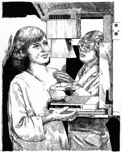 Keywords: Mammography illustration.jpg A woman getting a mammogam being assisted by a radiology technician Topics/Categories Historical -- Graphics Test or Procedure -- Imaging Procedures Type B W Illustration Source National Cancer Institute Al Louang Illustrator 2504 1989-12 Reuse Restrictions None - This image is in the public domain and can be freely reused Please credit the source and/or author listed above Al Louang Illustrator PD-USGov-HHS-NIH Media from National Cancer Institute Visuals Online Images uploaded by Fæ Mammography |