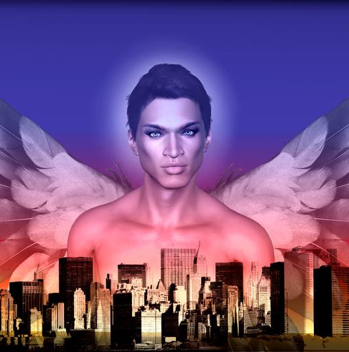 Keywords: man angel city buildings sky halo wings male person good religion angeles los human moral young spirit pre-made background handsome outdoors community