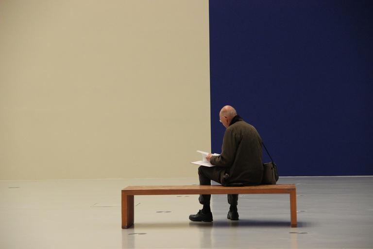 Keywords: man bank perspective wall blue white