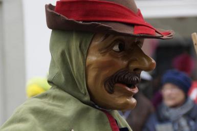 Keywords: man male human face person hat strassenfasnet fools jump swabian alemannic fasnet move haes mask carnival masquerade costume panel tradition customs haestraeger wooden mask carved custom fig fools guild guild group