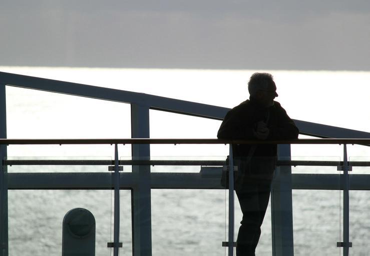 Keywords: man silhouette mood atmosphere rest silent human in the lens back light sea water holiday leisure relaxation people personal tourist more railing ship cruise mirroring cruise ship holiday cruise passenger ship ship travel driving cruise ship travel wave ocean hispanic shadow play shadow