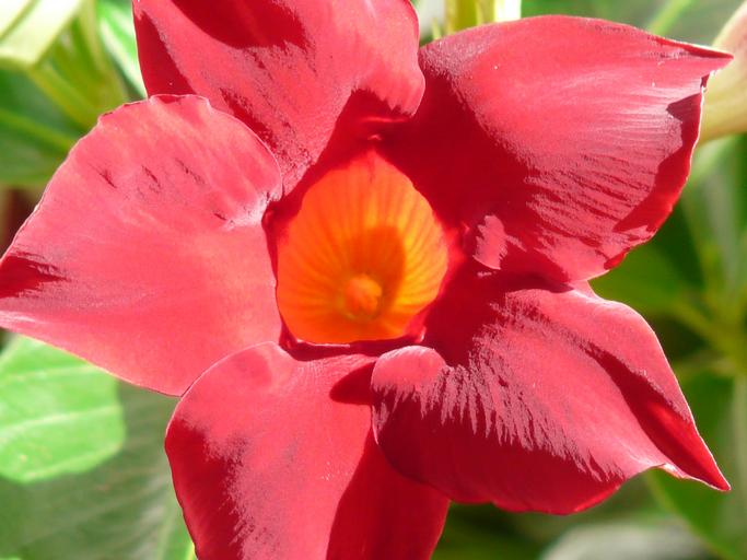 | Keywords: mandevilla bell shaped funnel flower blossom bloom red orange trumpet shaped funnel like neotropical liana climber semi shrub dog gift greenhouse apocynaceae crop garden plant mandevilla sanderi dipladenia funnel trichterförmig trumpet like bright fiery velvety red velvety sundaville tropidenia stans flower |