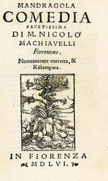 Keywords: Mandragola.jpg it Copertina originale della prima stampa del testo di Nicolo Machiavelli Public domanin Author 1518 PD-old-100 La mandragola 1524 books Theatre of Italy