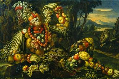 Keywords: Maniera di Arcimboldo, Giuseppe - Natura morta con frutta e verdure di stagione - Autumno.jpg manner of de aus einer Serie der Vier Jahreszeiten - 1690 1699 oil canvas cm 96 140 institution Pinacoteca Tosio Martinengo http //www lombardiabeniculturali it/opere-arte/schede/D0090-00958/ view autori offset 2 hid 855 sort sort_int lombardiabeniculturali it Other versions PD-old-100-1923 DEFAULTSORT Arcimboldo Still-life with fruits and vegetable of the season Autumn Paintings by Giuseppe Arcimboldo Anthropomorphic pareidolias by Giuseppe Arcimboldo Fruit or vegetables composing people Paintings of autumn People with owls in art Oil paintings of men Oil still-life paintings Oil still-life paintings of fruits Owls in paintings Recumbent men in art Recumbent men supine Still-life paintings of vegetables Paintings of fruit baskets 16th-century allegorical paintings 16th-century oil on canvas paintings 16th-century paintings from Italy 16th-century paintings not categorised by year 16th-century still-life paintings of fruits |
