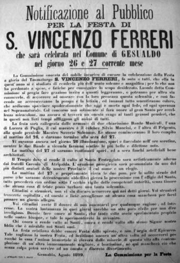 Keywords: Manifesto per la Festa di S. Vincenzo Ferreri (1899).jpg Manifesto della Festività in onore di san Vincenzo Ferreri a Gesualdo del 1899 scansione del manifesto 1989-08 Commissione per la Festa di S Vincenzo Ferreri <br/> PD-old Original upload log it wikipedia Manifesto_della_manifestazione_datato_1908 jpg wikitable - 2011-07-20 10 37 414×604× 95582 bytes Gopes il volo dell'Angelo di Gesualdo in provincia di Avellino Gesualdo Posters of Italy Saint Vincent Ferrer 1899 posters |
