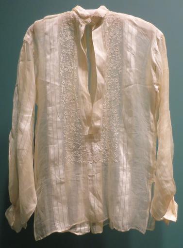 Keywords: Man's shirt from Luzon, late 19th century, pina, silk, plain weave, embroidery, Honolulu Museum of Art, accession 724.JPG en Man's shirt from Luzon late 19th century pina silk plain weave embroidery Honolulu Museum of Art accession 724 This shirt has been in the collection of the Honolulu Museum of Artsince 1927 own Hiart photo 2014 Textiles of the Philippines in the Honolulu Museum of Art Luzon Barong Tagalog Shirts Cc-zero |