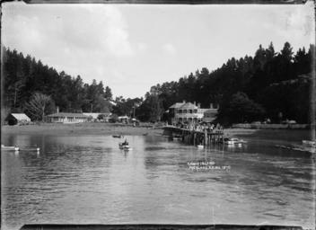 | Keywords: blackandwhite monochrome outdoor photo border water serene watercourse black and white Mansion House and nearby buildings, Mansion House Bay, Kawau Island, taken from off shore. Mansion House was possibly a guest house at this time. A group of people are waiting on the wharf for the ferry. Photograph taken by William A Price, early 1900s. Inscriptions: Inscribed - Photographer's title on negative -Kawau Island Auckland NZ No 1870. Quantity: 1 b&w original negative(s). Physical Description: Dry plate glass negative 4.5 x 6.5 inches Mansion House, Kawau Island from the water. Price, William Archer, 1866-1948 :Collection of post card negatives. Ref: 1/2-000250-G. Alexander Turnbull Library, Wellington, New Zealand. natlib.govt.nz/records/22516539 Mansion House and nearby buildings, Mansion House Bay, Kawau Island, taken from off shore. Mansion House was possibly a guest house at this time. A group of people are waiting on the wharf for the ferry. Photograph taken by William A Price, early 1900s. Inscriptions: Inscribed - Photographer's title on negative -Kawau Island Auckland NZ No 1870. Quantity: 1 b&w original negative(s). Physical Description: Dry plate glass negative 4.5 x 6.5 inches Mansion House, Kawau Island from the water. Price, William Archer, 1866-1948 :Collection of post card negatives. Ref: 1/2-000250-G. Alexander Turnbull Library, Wellington, New Zealand. natlib.govt.nz/records/22516539 |