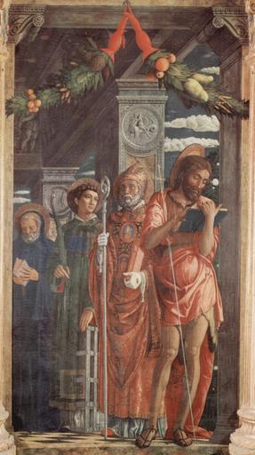 View Original:mantegna_altarpiece_san_zeno_veron_right_panel_st_benedict_st_lawrence_st_gregory_st_john_1459.jpg (1576x2808)