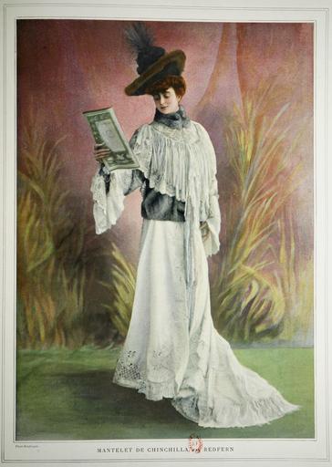 Keywords: Mantelet de chinchilla par Redfern 1904.jpg Mantelet de chinchilla par Redfern Mantelet de chinchilla ” Robe en drap blanc brodé Parements Empiècement en dentelle brodée gris argent Petit collet de dentelle garni de pampilles grises Photograph in Les Modes Revue mensuelle illustrée des arts décoratifs appliqués à la femme ark /12148/bpt6k5726179t/f30 File Mantelet de chinchilla par Redfern 1904 cropped jpg 1904-10 Creator Léopold-Émile Reutlinger PD-old-70-1923 Mantelets clothing 1904 Chinchilla clothing Redfern in 1904 Fashion in 1904 Léopold-Émile Reutlinger Furs by John Redfern Fur fashion in 1904 |