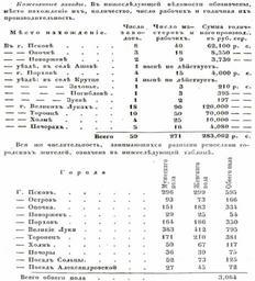 | Keywords: Manufactory Velikiye Luki 1852.png ru К се едине XIX в Великие Луки азвивался как емесленный и кожевенный цент С авнительные таблицы по го одам Псковской губе нии на 1852 год 1 Численность емесленников; 2 Число кожевенных заводов Военно-статистическое обоз ение Российской импе ии Псковская губе ния Т III Ч 2 СПб 1852 С 311 313 Депа тамент Гене ального Штаба 1852 PD-RusEmpire History of Velikiye Luki PD-old | ||||