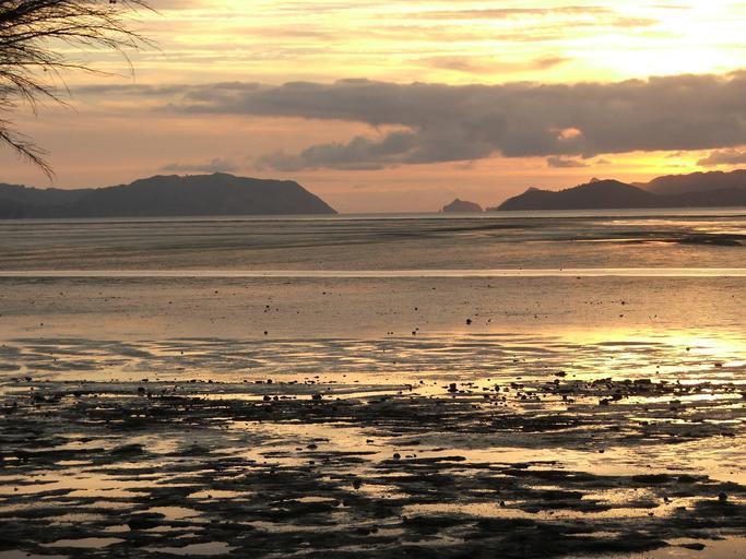 Keywords: Manukauheads-sunset.JPG A photo of the Manukau Heads taken at sunset from the Ihuamatao Stonefields 2007-02-21 own assumed Mostlyharmless Manukau Harbour Beaches of New Zealand Sunsets of New Zealand
