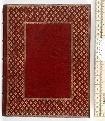 Keywords: -manuscript- - Upper cover (Davis525).jpg Style Frame; Caption Upper cover; Colour Red; Edge Unspecified exhibition history Decorative Technique Tooled in gold; Cover Material Goatskin includes morocco turkey etc Macchi states; c 1650 A similar layout is to be found on French bookbindings kept in the 1 Condé Museum Chantilly Musée Condé Château de Chantilly Reliures francaises du XVIIe siècle p 52 n 20 bound by le Gascon on text Saint François de Sales Introduction a la vie devote ; 2 National Austrian Library Vienna on a French binding bound for Jean-Baptiste Colbert between 1667 and 1683 on text Observation sur le traité de la politique de France manuscript XVII th century shelfmark Cod Ser N 2839 Österreichische Nationalbibliothek Wien Europäische Einbandkunst p 99 n 177 Similar examples are reproduced in M Breslauer Catalogue 88 n 101 pl V; Catalogue de la bibliothèque de S E D Paolo Borghese p 672 n 4531 on Car Pascalius Coronae Paris 1610; Librairie Sourget Chartres Manuscrits et livres précieux Du Treizième siècle à nos jours p 234-235 n 107 on Guillaume de Peyrat L'histoire ecclésiastique de la Cour Paris Henry Sara 1645; A Lier Bucheinbände aus dem Bücherschatze der Kgl öffentl Bibliothek zu Dresden II n 87 object history Text 17c; Unspecified; Unspecified object type Cc-zero place of creation Binding France place of discovery Unspecified British Library image http //www bl uk/catalogues/bookbindings/LargeImage aspx RecordId 020-000004226 ImageId ImageId 41718 Copyright BL manuscript Uploaded with GWToolset manuscript - Upper cover Davis525 http //www webarchive org uk/bldatasets/bindings/6234_4 jpg Bookbinding 17th-century bookbinding British Library Bookbindings |