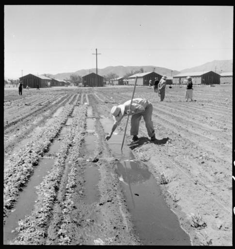 | Keywords: Manzanar Relocation Center, Manzanar, California. Evacuees of Japanese ancestry are growing flouris . . . - NARA - 537977.jpg Scope and content The full caption for this photograph reads Manzanar Relocation Center Manzanar California Evacuees of Japanese ancestry are growing flourishing truck crops for their own use in their hobby gardens These crops are grown in plots 10 x 50 feet between blocks of barrack at this War Relocation Authority center General notes 537977 Local identifier 210-G-C680 Department of the Interior War Relocation Authority 02/16/1944 - 06/30/1946 NARA-Author Lange Dorothea 1895-1965 Photographer 1372774 <br /> Still Picture Records Section Special Media Archives Services Division NWCS-S National Archives at College Park 8601 Adelphi Road College Park MD 20740-6001 1942-07-02 Record group Record Group 210 Records of the War Relocation Authority 1941 - 1989 Record group ARC 537 Central Photographic File of the War Relocation Authority compiled 1942 - 1945 Series ARC 536000 File unit File unit ARC Variant control numbers NAIL Control Number NWDNS-210-G-C680 Other versions <gallery> File Manzanar_Relocation_Center _Manzanar _California _Evacuees_of_Japanese_ancestry_are_growing_flouris_ _ _ _-_NARA_-_537977 tif tif File Manzanar_Relocation_Center _Manzanar _California _Evacuees_of_Japanese_ancestry_are_growing_flouris_ _ _ _-_NARA_-_537977 jpg jpg </gallery> NARA-cooperation PD-USGov Photographs by Dorothea Lange of Manzanar War Relocation Center |