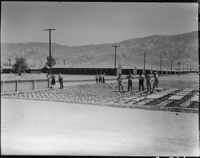Keywords: Manzanar Relocation Center, Manzanar, California. Doctor Robert Emerson, on the extreme right, visi . . . - NARA - 538020.tif Scope and content The full caption for this photograph reads Manzanar Relocation Center Manzanar California Doctor Robert Emerson on the extreme right visits the War Relocation Center to check up the progress of the guyaule plantings Doctor Emerson is a bio-chemist and botanist from the California Institute of Technology and the director of the guyaule rubber experiment He is here shown conferring with a part of his Japanese staff of young evcauee scientests at Plot 4 There are 408 plants in this plot that have been in the ground for ten days General notes 538020 Local identifier 210-G-C726 Department of the Interior War Relocation Authority 02/16/1944 - 06/30/1946 NARA-Author Lange Dorothea 1895-1965 Photographer 1372774 <br /> Still Picture Records Section Special Media Archives Services Division NWCS-S National Archives at College Park 8601 Adelphi Road College Park MD 20740-6001 1942-06-28 Record group Record Group 210 Records of the War Relocation Authority 1941 - 1989 Record group ARC 537 Central Photographic File of the War Relocation Authority compiled 1942 - 1945 Series ARC 536000 File unit File unit ARC Variant control numbers NAIL Control Number NWDNS-210-G-C726 yes Other versions <gallery> File Manzanar_Relocation_Center _Manzanar _California _Doctor_Robert_Emerson _on_the_extreme_right _visi_ _ _ _-_NARA_-_538020 tif tif File Manzanar_Relocation_Center _Manzanar _California _Doctor_Robert_Emerson _on_the_extreme_right _visi_ _ _ _-_NARA_-_538020 jpg jpg </gallery> NARA-cooperation PD-USGov Photographs by Dorothea Lange of Manzanar War Relocation Center NARA TIF images with categorized JPGs |