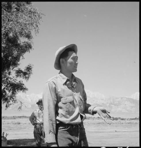 Keywords: Manzanar Relocation Center, Manzanar, California. Johnny Fukazawa, foreman of fields Numbers 3, 4, . . . - NARA - 538055.jpg Scope and content The full caption for this photograph reads Manzanar Relocation Center Manzanar California Johnny Fukazawa foreman of fields Numbers 3 4 5 and 6 and heading a 20-man crew on the farm project says We have problems to combat here which are new to us We don't know these hot dry winds There were no rabbits to plague us down below Everything is so different and we have to do much experimenting General notes 538055 Local identifier 210-G-C761 Department of the Interior War Relocation Authority 02/16/1944 - 06/30/1946 NARA-Author Lange Dorothea 1895-1965 Photographer 1372774 <br /> Still Picture Records Section Special Media Archives Services Division NWCS-S National Archives at College Park 8601 Adelphi Road College Park MD 20740-6001 1942-06-30 Record group Record Group 210 Records of the War Relocation Authority 1941 - 1989 Record group ARC 537 Central Photographic File of the War Relocation Authority compiled 1942 - 1945 Series ARC 536000 File unit File unit ARC Variant control numbers NAIL Control Number NWDNS-210-G-C761 Other versions <gallery> File Manzanar_Relocation_Center _Manzanar _California _Johnny_Fukazawa _foreman_of_fields_Numbers_3 _4 _ _ _ _-_NARA_-_538055 tif tif File Manzanar_Relocation_Center _Manzanar _California _Johnny_Fukazawa _foreman_of_fields_Numbers_3 _4 _ _ _ _-_NARA_-_538055 jpg jpg </gallery> NARA-cooperation PD-USGov Photographs by Dorothea Lange of Manzanar War Relocation Center |