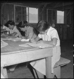 Keywords: Manzanar Relocation Center, Manzanar, California. Part of a class under the Adult Education Program . . . - NARA - 538096.jpg Scope and content The full caption for this photograph reads Manzanar Relocation Center Manzanar California Part of a class under the Adult Education Program at this War Relocation Authority center It is composed of Issei and Kibei evacuees who are studying the Ideals of American Citizenship and the English language with which they are unfamiliar There are 18 such classes each averaging 20 volunteer members and conducted by volunteer instructors General notes 538096 Local identifier 210-G-C803 Department of the Interior War Relocation Authority 02/16/1944 - 06/30/1946 NARA-Author Lange Dorothea 1895-1965 Photographer 1372774 <br /> Still Picture Records Section Special Media Archives Services Division NWCS-S National Archives at College Park 8601 Adelphi Road College Park MD 20740-6001 1942-07-03 Record group Record Group 210 Records of the War Relocation Authority 1941 - 1989 Record group ARC 537 Central Photographic File of the War Relocation Authority compiled 1942 - 1945 Series ARC 536000 File unit File unit ARC Variant control numbers NAIL Control Number NWDNS-210-G-C803 Other versions <gallery> File Manzanar_Relocation_Center _Manzanar _California _Part_of_a_class_under_the_Adult_Education_Program_ _ _ _-_NARA_-_538096 tif tif File Manzanar_Relocation_Center _Manzanar _California _Part_of_a_class_under_the_Adult_Education_Program_ _ _ _-_NARA_-_538096 jpg jpg </gallery> NARA-cooperation PD-USGov Photographs by Dorothea Lange of Manzanar War Relocation Center |