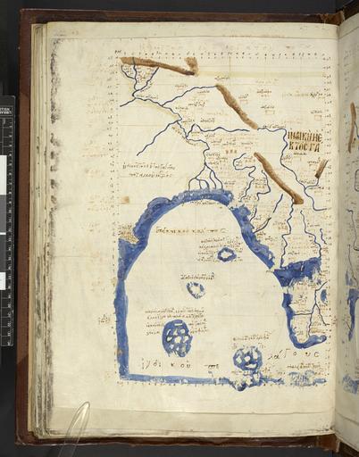 | Keywords: Map after Ptolemy's Geographia (Burney MS 111, f.101v).jpeg India extra Gangem fluvium et Sinae The western half of the Eleventh Asian Map from a Greek manuscript edition of Ptolemy's Geography depicting India beyond the Ganges and the realm of the Sinae Ἰνδικῆς τῆς ἐκτὸς Γάνγου Ποταμοῦ Σινῶν Θέσις Ἰνδικὴη ἐκτος Γανγον Ποταμον και Σῗναι Institution British Library map date other fields Information field British Library Shelfmark Burney MS 111 f 101v other versions <gallery> File Map after Ptolemy's Geographia Burney MS 111 f 102r jpeg The eastern half of the map </gallery> PD-old print date British Library image ark /81055/vdc_100000001311 0x0000a6 A collection of maps in Greek after Ptolemy's Geographia warp status wikidata location wikidata title Uploaded with GWToolset Map after Ptolemy's Geographia Burney MS 111 f 101v http //www webarchive org uk/bldatasets/MapImages/Pelagios/PtolemyGeography/burney_ms_111_f101v jpeg British Library Maps Collections Burney MS 111 101 Maps in Greek 1420 maps Ptolemy's 11th Asian Map 1420a ImageNote 1 4282 1874 594 446 5378 6845 2 ἰνδικὴη ἐκτος γα <br> Indikēē ektos Ga ImageNoteEnd 1 ImageNote 2 1998 606 3300 274 5378 6845 2 ἰνδικῆς τῆς ἐκτὸς γάνγου οταμοῦ σινῶν θέσις <br> Indikēs tēs ektòs Gángou Potamoû Sinōn Thésis ImageNoteEnd 2 |