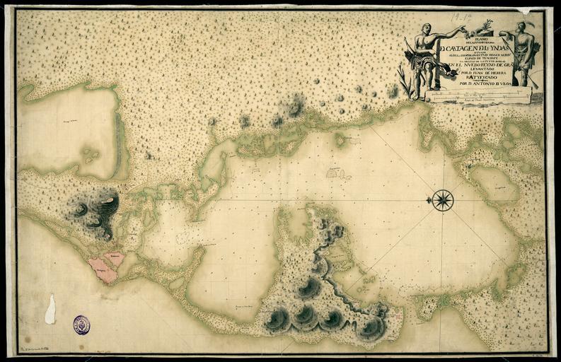 | Keywords: Map of the City and Bay of Cartagena de las Indias WDL10087.png Artwork ru Э е а и Сотомайо Хуан де асцвет тво чества в 1716 1733 гг fr Herrera y Sotomayor Juan de actif de 1716 à 1735 en Herrera y Sotomayor Juan de flourished 1716-1735 zh 胡安·德·埃雷拉·y·索特玛雅,全盛时 1716-1735 年 pt Herrera y Sotomayor Juan de prosperou entre 1716 e 1735 ar خوان دي إيريرا إي سوتومايور، ازدهرت أعماله في 1716-1735 es Herrera y Sotomayor Juan de prosperó entre 1716 y 1735 ru Ка та залива и го ода Ка тахена де Индиас fr Carte de la baie et de la ville de Carthagène des Indes en Map of the City and Bay of Cartagena de las Indias zh 西印度群岛卡塔赫纳城与海湾 图 pt Mapa da cidade e baía de Cartagena de las Indias ar خريطة مدينة وخليج كارتاخينا دي لاس إندياس ru Эта укописная ка та аск ашенная в учную че нильным пе ом была выполнена Антонио Уллоа 1716 1795 гг в 1735 г на основе более анней ка ты Хуана де Э е а дати ованной п име но 1721 г а ней под обно изоб ажен залив Ка тахена-де-Индиас и п илегающие п иб ежные айоны сов еменного го ода Ка тахена Колумбия В то в емя эта те ито ия являлась частью вице-ко олевства овая Г анада Испанской импе ии Севе на ка те указан на компасной озе и находится слева Долгота указана относительно Ко олевской аст ономической обсе вато ии на ост ове Тене ифе Кана ский а хипелаг П оме ы глубин и изобаты указывают глубину мо ского дна для судоходства Также изоб ажены до оги и леса азвание авто и масштаб ка ты указаны в ве хнем п авом углу на пьедестале ук ашенном фигу ами индейцев по бокам Уллоа был испанским мо ским офице ом кото ого в 1735 г назначили членом научной экспедиции в Пе у о ганизованной Ф анцузской академией наук Он п овел почти десять лет в Южной Аме ике вместе с экспедицией а об атном пути в Испанию в 1745 г ко абль на кото ом путешествовал Уллоа был захвачен б итанцами Он был взят в плен и отвезен в Англию где п овел несколько лет Он завоевал уважение и д ужеское асположение многих ведущих английских ученых и получил статус члена Ко олевского общества в Лондоне В конце концов ему позволили ве нуться в Испанию и в 1784 г он опубликовал <em> Relación histórica del viaje á la América Meridional </em> под обный отчет о на одах геог афии и естественной исто ии Южной Аме ики по езультатам его исследования на континенте Возможно эта ка та является о игиналом ка ты п илагавшейся к <em> Relación </em> Уллоа Известный испанский ка тог аф Томас Лопес 1730 1802 гг также использовал ка ту Уллоа в своей более поздней ка те залива и го ода Ка тахена <br>Рукописные ка ты; о ские ка ты fr Cette carte manuscrite colorée à la main et dessinée à la plume et à l'encre fut réalisée par Antonio de Ulloa 1716 1795 en 1735 Basée sur une carte précédente de Juan de Herrera datant de 1721 environ elle montre en détail la baie de Carthagène des Indes et la région côtière voisine de la ville actuelle de Carthagène en Colombie l'époque ce territoire faisait partie de la vice-royauté de Nouvelle-Grenade de l'empire espagnol Une rose des vents indique que la carte est orientée avec le nord à gauche La longitude est établie par rapport à l'Observatoire astronomique royal de Ténérife aux Canaries Les sondages et les lignes de brasse indiquent la profondeur des fonds marins pour la navigation Les routes et les forêts sont également représentées Le titre l'auteur et l'échelle de la carte apparaissent dans la partie supérieure sur un piédestal encadré de personnages indiens Officier de marine espagnol Ulloa fut nommé en 1735 membre de l'expédition scientifique du Pérou organisée par l'Académie française des sciences Dans le cadre de cette expédition il passa près d'une décennie en Amérique du Sud En 1745 alors qu'Ulloa retournait en Espagne le navire sur lequel il voyageait fut capturé par les Britanniques Fait prisonnier il fut envoyé en Angleterre où il resta plusieurs années Il gagna le respect et l'amitié de nombreux grands scientifiques anglais et fut nommé membre de la Royal Society de Londres Il fut finalement autorisé à retourner en Espagne et en 1784 il publia <em>Relación histórica del viaje á la América Meridional</em> un récit détaillé du peuple de la géographie et de l'histoire naturelle d'Amérique du Sud basée sur ses recherches sur le continent Cette carte fut peut-être l'original de celle qui apparaît dans la <em>Relación</em> d'Ulloa Le célèbre cartographe espagnol Tomás López 1730 1802 utilisa également la carte d'Ulloa 