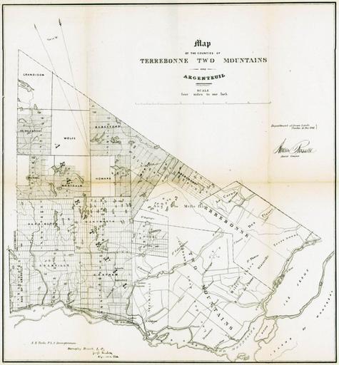 | Keywords: Map of the counties of Terrebonne Two Mountains and Argenteuil.png en Map of the counties of Terrebonne Two Mountains and Argenteuil province of Quebec fr 1 carte ; 40 x 37 cm sur feuille 43 x 41 cm pliée 22 x 10 cm - Carte possiblement extraite d'un document http //services banq qc ca/sdx/cep/document xsp id 0000105711 1861 Québec Province Département des terres de la couronne - Taché E -E Eugène-Étienne 1836-1912 - Estampille coin inférieur gauche Joseph Bouchette Dep Surv Gen Maps of Quebec 1861 in Canada Quebec in the 1860s Joseph Bouchette Terrebonne Quebec Deux-Montagnes Regional County Municipality Argenteuil Regional County Municipality PD-old-100 |