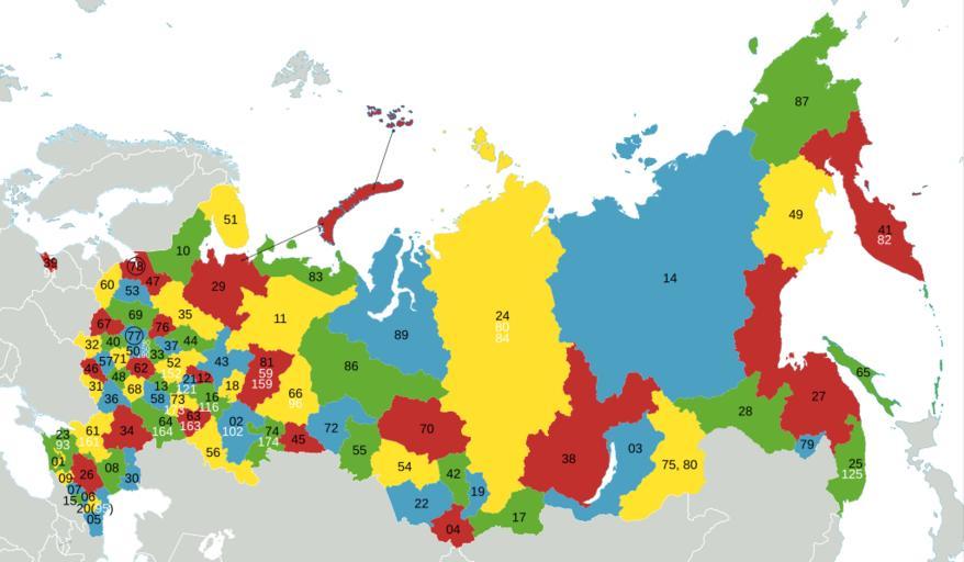 MAKE A MEME View Large Image Map Federal subjects of Russia (by number).svg GIBDD-GAI Коды субъектов Российской Феде ации Белым выделены коды используемые ГИБДД-ГАИ Public domain map by EIA File ...