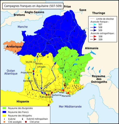 Keywords: Map Frank campaigns in Aquitaine 507-509-fr.svg fr Campagnes franques en Aquitaine 507-509 Travail personnel sur un fond de carte hydrographique de historicair D'après Michel Rouche Des Wisigoths aux Arabes l'Aquitaine 418-781 naissance d'une région École des Hautes Études en Sciences Sociales Jean Touzot 1979 p 53 et Clovis éditions Fayard 1996 p 310 Romain0 06 03 2010 Other versions/Map Frank campaigns in Aquitaine 507-509 Campagnes franques en Aquitaine 507-509 de svg Maps of Gauls SVG maps showing history in French Maps showing 6th-century history Maps of the Merovingian territory |