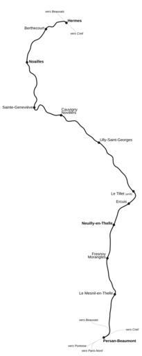 Keywords: Map of Hermes Beaumont railway.svg fr Carte du tracé du chemin de fer de Hermes à Beaumont dans l'Oise France own Sardon 2009-02-22 Local railway maps of France