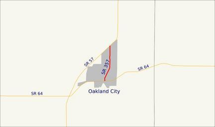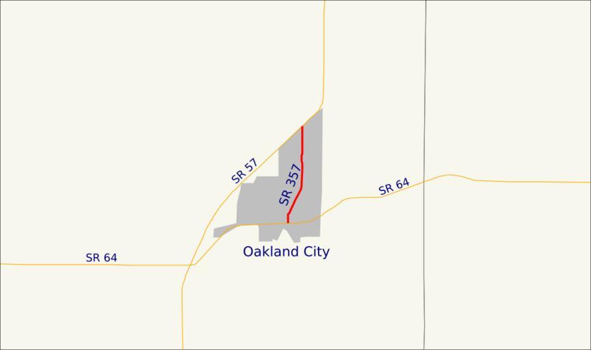 Keywords: Map of Indiana State Road 357.svg This is a map which shows the route of Indiana State Road 357 in the United States My own work using freely-available shape data and custom-written MapScript applications 2008-03-04 Omnedon Road maps of Indiana SR357 |