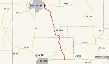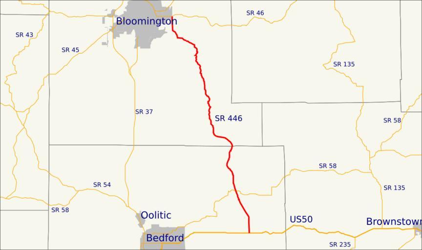 Keywords: Map of Indiana State Road 446.svg This is a map which shows the route of Indiana State Road 446 in the United States My own work using freely-available shape data and custom-written MapScript applications 2008-03-04 Omnedon Road maps of Indiana SR446 |