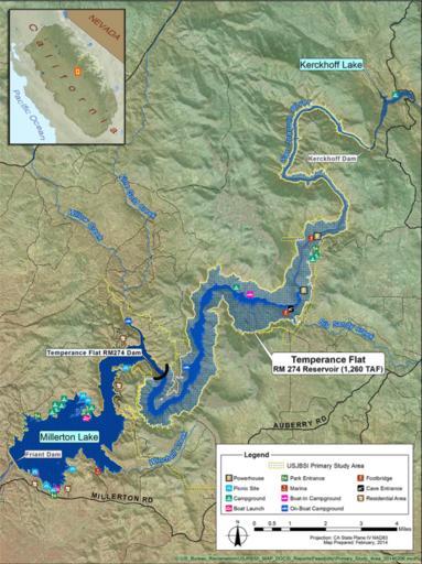 | Keywords: Map of proposed Temperance Flat Dam and reservoir.png en Proposed Temperance Flat dam as of January 2014 USBR report Dam sits at river mile 274 and partially inundates both Millterton and Kerckhoff reservoirs 2014-02-27 19 45 31 http //www usbr gov/mp/sccao/storage/docs/Draft_Feasibility_Report_2014/USJRBSI_Draft_FR_2014_Full_Report pdf United States Bureau of Reclamation PD-USGov Uploaded with UploadWizard Maps of California | ||||