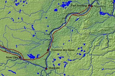Keywords: Map, Traverse des Sioux.GIF Shaded relief image of south central Minnesota in central North America from the http //www nationalatlas gov/natlas/Natlasstart asp National Atlas Mapmaker modified to show location of Traverse des Sioux and Red River Trail along the Minnesota River after Gilman Rhoda et al 1979 The Red River Trails 1820-1870 Saint Paul Minnesota Historical Society Press ISBN 0-8965-8036-9 As to modifications submitter releases all rights and specifically licenses use of this image under GNU Free Documentation License http //www nationalatlas gov/natlas/ PD-USGov History of Minnesota Maps of Minnesota |