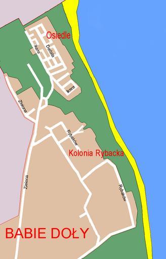 Keywords: Mapa.dzielnicy.Babie.Doly.w.Gdyni.png Mapa gdyńskiej dzielnicy Babie Doły kolorem jasnobrązowym oznaczono obszar zabudowany kolorem zielonym oznaczono lasy kolorem żółtym oznaczono plażę kolorem niebieskim oznaczono Zatokę Gdańską kolorem szarym oznaczono tereny lotniska wojskowego na obszarze gminy Kosakowo czerwona linia oznacza granicę miasta Gdyni Autor Arek Babie Doły Maps of Gdynia Gmina Kosakowo |