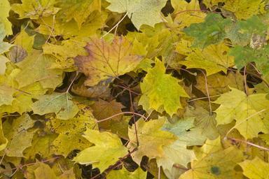 Keywords: maple leaves forest floor golden october autumn sunny leaves emerge yellow fall color