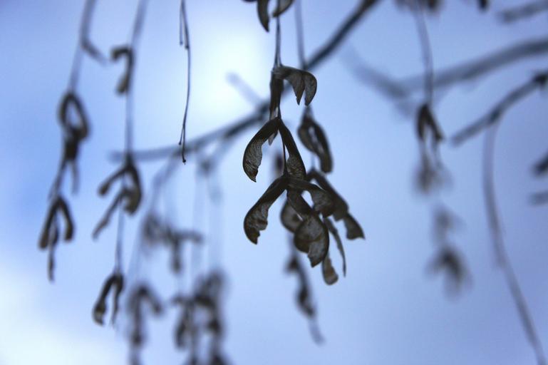 Keywords: maple seeds maple leaves winter old nature sky grey cold