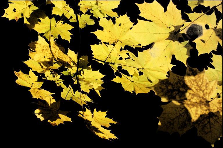 Keywords: maple translucent bright yellow evening sun leaves autumn emerge fall foliage colors of autumn fall leaves golden autumn