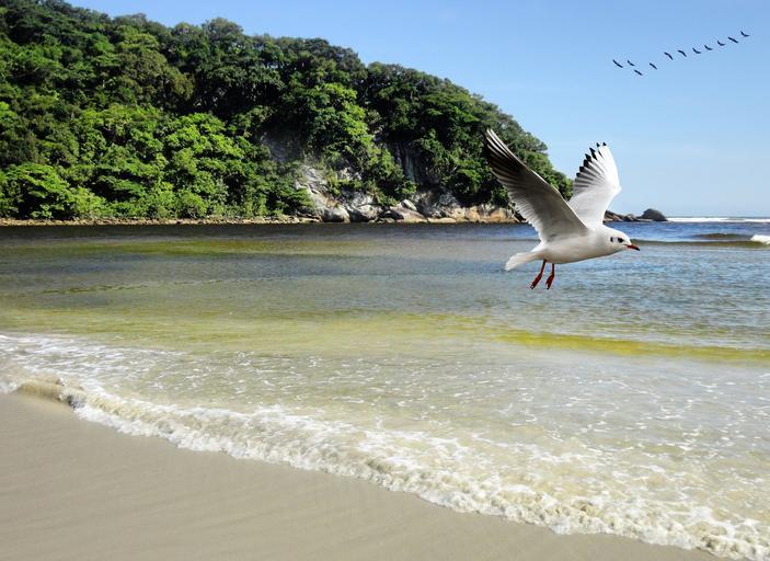 Keywords: mar ocean beach water litoral island mountains bird seagull sand brazil blue nature beira mar landscape sky blue sky