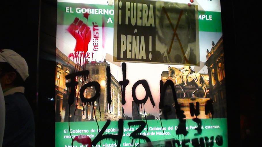 Keywords: Marcha “Júrame que no te rindes” 21.jpg es Pinta en una estación de Trolebús sobre la avenida Eje Central La pinta se realizó por parte de integrantes de la marcha Júrame que no te rindes en la caravana Julio César Mondragón Fontes desde Tlatelolco hasta el Centro Histórico de la Ciudad de México México 2014-11-20 18 21 38 own Lameirasb other versions cc-zero Ayotzinapa protests Nov 20 Mexico City project Lameirasb Protests related to the forced kidnapped of 43 students in Ayotzinapa Acción Global por Ayotzinapa Uploaded with UploadWizard Template Wiki Borregos file donated Fall 2013 |