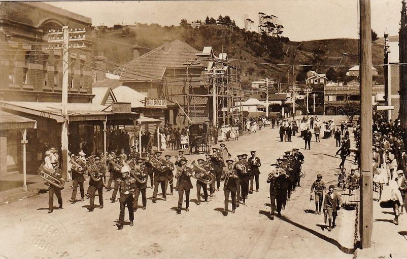 Marching_band_in_Burnie,_Tasmania_-_New_Years_Day_1921.jpg (1432x914)