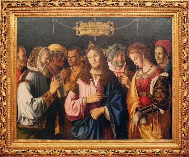 | Keywords: Marco Marziale - Christus en de overspelige vrouw.JPG Artwork Creator Marco Marziale ~ 1505 oil canvas cm 130 166 Institution Bonnefantenmuseum 3587 object history loan Bonnefantenmuseum Rijksdienst voor het Cultureel Erfgoed http //collectie icn nl/frmDetails aspx obs_guid 8de171ca-6482-48a1-a36c-857ec06dc723 NK2275 QVI SINE PECCATO EST VESTRVM / PRIMVS IN ILLAM LAPIDEM MITTAT top centre MARCHVS / MARCIALIS / V centre right signature and date 57264 Ophelia2 Artwork PD-old-100 Photo Early Italian paintings in the Bonnefantenmuseum Marco Marziale 1505 paintings 16th-century paintings of Jesus Christ and the woman taken in adultery Files by User Ophelia2 |