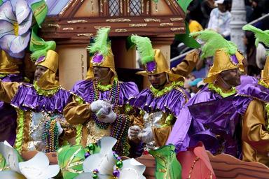 | Keywords: Mardi Gras Parade, New Orleans, Louisiana LCCN2011646937.tif 1 photograph digital TIFF file color Notes Forms part of Carol M Highsmith's America Project in the Carol M Highsmith Archive ; Gift; Carol M Highsmith; 2011; DLC/PP-2002 038-8 ; Credit line Carol M Highsmith's America Library of Congress Prints and Photographs Division ; Mardi Gras is organized by Carnival krewes Krewe float riders toss throws to the crowds; the most common are strings of plastic colorful beads doubloons decorated plastic throw cups and small inexpensive toys ; Title date and subjects provided by the photographer 2011 Creator Carol M Highsmith Library of Congress Catalog http //lccn loc gov/2011646937 Image download https //cdn loc gov/master/pnp/highsm/11700/11704a tif Original url http //hdl loc gov/loc pnp/highsm 11704 No known restrictions on publication LOC-image highsm 11704 PD-Highsmith Images uploaded by Fæ Photographs by Carol M Highsmith |