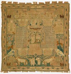Keywords: Margaret Grant - Sampler - Google Art Project.jpg Margaret 6718091 Grant /collection/cooper-hewitt-national-design-museum/artwork/sampler-margaret-grant/6719003/ 75370 Margaret Grant /artist/rose-franken/6847066/ 6847066 /collection/cooper-hewitt-national-design-museum/ Cooper-Hewitt National Design Museum 3644669 http //www cooperhewitt org/ /collection/cooper-hewitt-national-design-museum/artwork/sampler-margaret-grant/6719003/ 1737 1737 Medium silk and linen embroidery on linen foundationTechnique embroidered in two-sided cross stem buttonhole satin and long-armed cross stitches on plain weave foundation ex coll Mrs Henry E Coe Eva Johnston Coe 420 6719003 False 1737 1941-69-6 http //collection cooperhewitt org/view/objects/asitem/id/75370 Bequest of Mrs Henry E Coe Sampler 1730 1740 w405 x h420 cm 1737 False 0 962890625 Object sampler-margaret-grant Sampler s 405 H x W 42 x 40 5 cm 16 9/16 x 15 15/16 in Embroidered Samplers 1984Museum of Early American Folk Art Collector's Choice Part II May 12 - July 5 1970 Margaret Grant her work begun April the 18 1737 in the 9th year of her age Medium silk and linen embroidery on linen foundationTechnique embroidered in two-sided cross stem buttonhole satin and long-armed cross stitches on plain weave foundation ex coll Mrs Henry E Coe Eva Johnston Coe special url_id 4wFE8qxdDlf1ng PD-old-100-1923 Google Art Project works by Margaret Grant Textiles in the Cooper “Hewitt Smithsonian Design Museum 1730s samplers Google Art Project works in Cooper-Hewitt Smithsonian Design Museum 1737 works