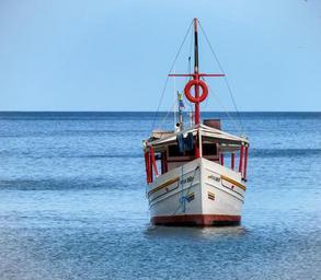 Keywords: margarita island boat sea ocean water sky clouds nature outside reflections scenic horizon