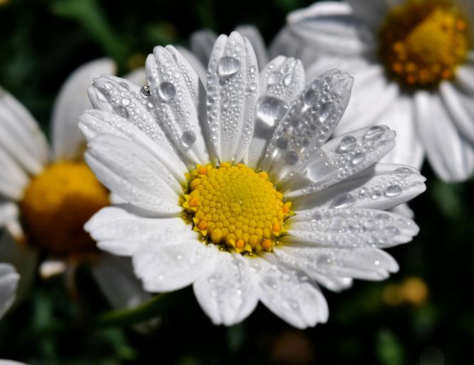 Keywords: margaritte dew blossom bloom drop of water white